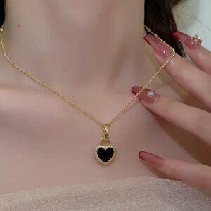 This cute heart necklace is two-toned (Black Onyx one one side and Holographic white marble on the other side) and can be worn on either side!