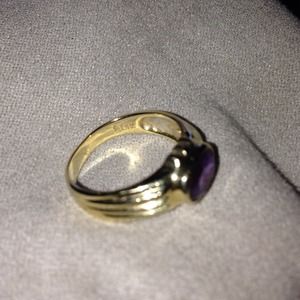14K Gold with Real Amethyst Gem Ring, size 6