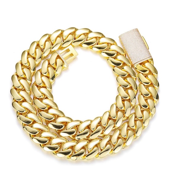 The polished gold finish and secure, iced-style box clasp give it a luxurious feel—perfect for daily wear, special events, or layering with your favorite pieces. Designed as a unisex statement accessory that brings instant confidence and style.