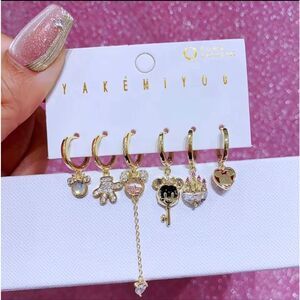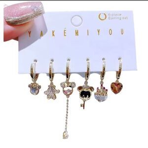 14K Gold Plated Disney Mickey & Minnie Theme Earrings Hoop Dangle Mismatched