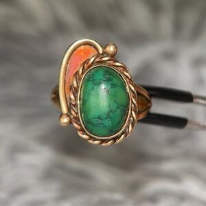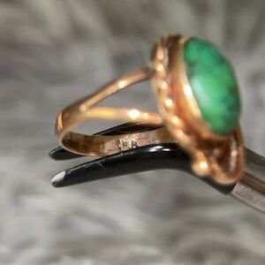 Real 14k Yellow Gold Native American Green Turquoise Ring, NOT GOLD PLATED OR GOLD FILLED.