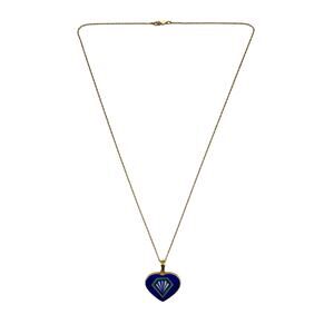 14K Opal Lapis Malachite Intarsia Heart Yellow Gold Pendant 18" Chain Necklace