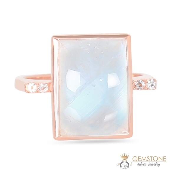 Get Beautiful Design Sterling Silver Based 14k Rose Gold Moonstone ring With Genuine Moonstone. Only Best Quality moonstone used