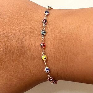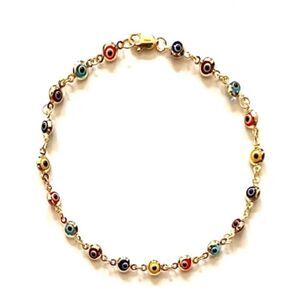 14K Real Gold Rainbow evil Eye Bracelet | Birthday Gift for Her | Ideal Gift |