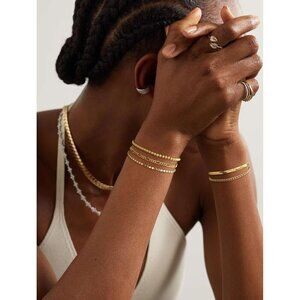 Graceful Gold Bracelets Set: Consisting of Beaded Bracelets, Figaro Bracelets, Dot Chain Bracelets, Cuban Link Bracelets, and Herringbone Bracelets. Suited for layering or single wear.