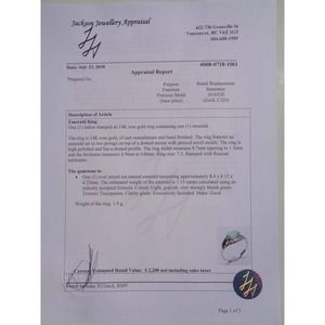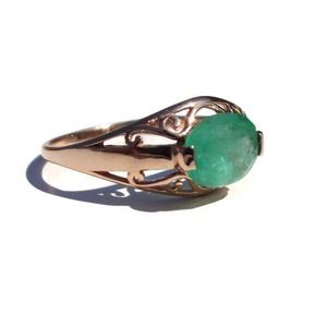 14K Rose Gold Emerald Ring, Natural Green Emerald Gemstone Ring Size 7.5 1.15ct