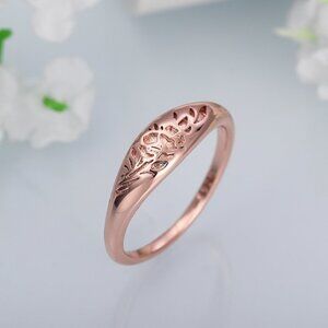 🌸14K Rose Gold Plated Flower Carved Unique Vintage Rings for Women, L022