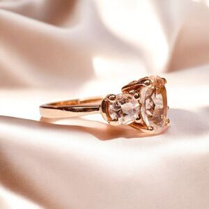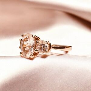 Beauty beholden for thousands of years, gold and gemstones come together to indulge the mind with masterful beauty. This is a solid 10k Rose Gold 1.5CTTW 8x6mm natural pink morganite Three Stone ring. It is a size 7. Weighs approximately 2.4g. An excellent gift for a loved one, engagement ring, wedding ring, anniversary gift for wife, girlfriend, birthday gift, etc. Gift Ready!