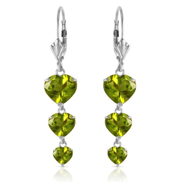 14K. SOLID GOLD CHANDELIERS EARRING WITH PERIDOTS (White Gold)