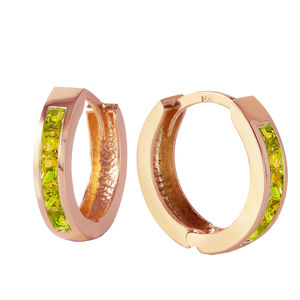 14K. SOLID GOLD HOOP HUGGIE EARRING WITH PERIDOTS (Rose Gold)