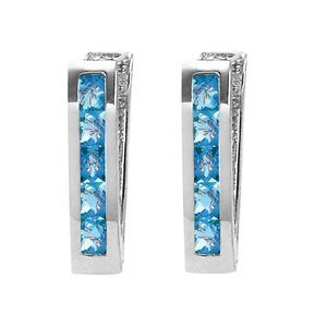 10 Princess cut Blue Topaz shimmer in this glistening 14k Oval Huggie Earrings
