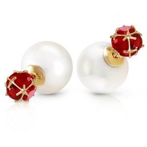 This new look is everywhere. The six Rubies stones sits in front like a stud, while the larger 16mm shell pearl secures to the 14kt gold post and drops behind the lobe. Post, 14kt gold earrings. Our shell pearls are lab-created from oyster shells to ensure durability and affordability.