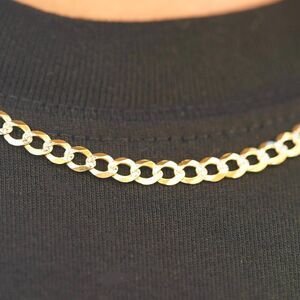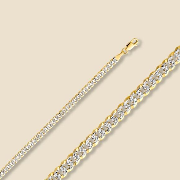 14K Solid Gold 4mm Cuban White Pave Chain Necklace | Elegant Gold Jewelry