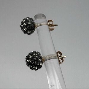 14K Solid Gold Black Crystal Ball Stud Earrings – Preowned Sparkly Bead posts
