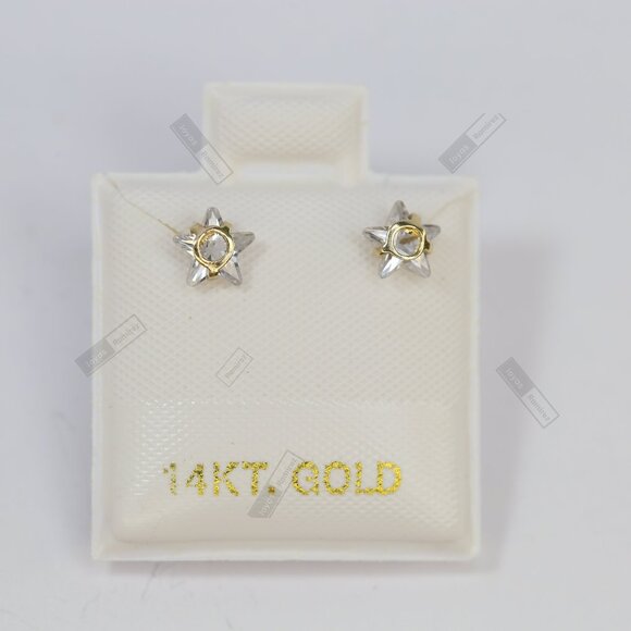 14K Solid Gold Clear Star Stud Earrings • Faceted Crystal Look.