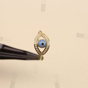 14K Solid Gold Evil Eye Ring • Size 7 • Good Luck & Positive Energy.