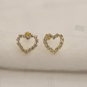 14K Solid Gold Heart Stud Earrings With Zirconia • Fine Jewelry.