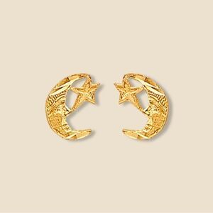 🌙 Shine Bright with Our 14K Solid Gold Moon & Star Push Back Earrings 🌟
