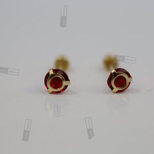 14K Solid Gold Red CZ Stud Earrings • Elegant Round Design • For Women & Girls.