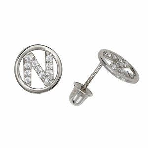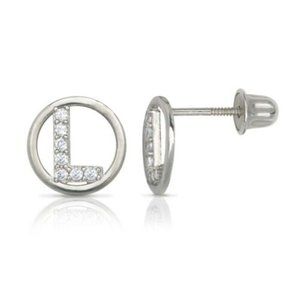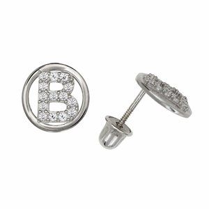 14K Solid White Gold 8mm Letter Initial Halo CZ Stud Alphabet Earrings