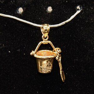 14K Gold Beach Bucket and shovel Charm/Pendant 1" X 1/2" Great for Beach Girl Necklace or Bracelet 2 Grams of 14K Gold