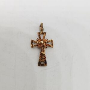 14K Solid Yellow Gold Crucifix Cross Pendant For NecklacebRustic Brutalist 1 Gr