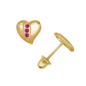 14K Solid Yellow Gold Heart Studs Screw Back Earrings Set With Sparkling Stones