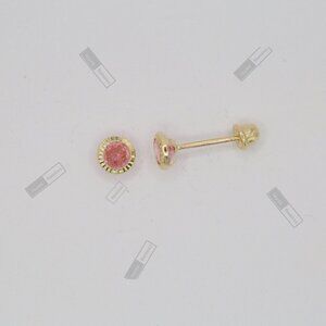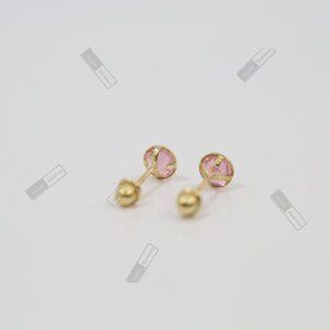 14K Solid Yellow Gold Round Pink CZ Stud Earrings • 4mm Feminine Elegant Design.