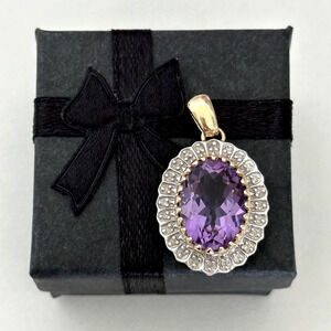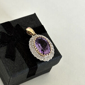 * Stunning gold pendant features a sparkling oval purple faceted amethyst with clear diamonds, set in solid 14k white & yellow gold.