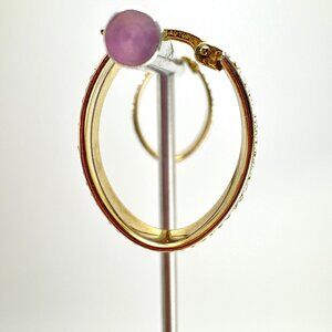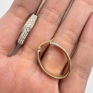14K & Sterling Silver 925 Cubic Zirconia Elongated Hoop Earrings Size 1" Length