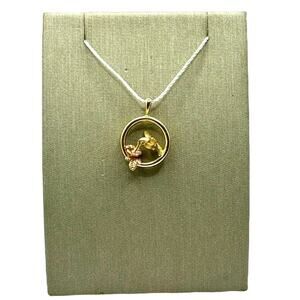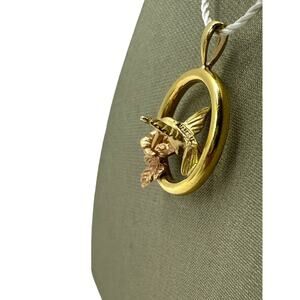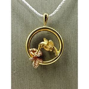 14K Two-Tone Hummingbird & Flower Circle Pendant (16797)