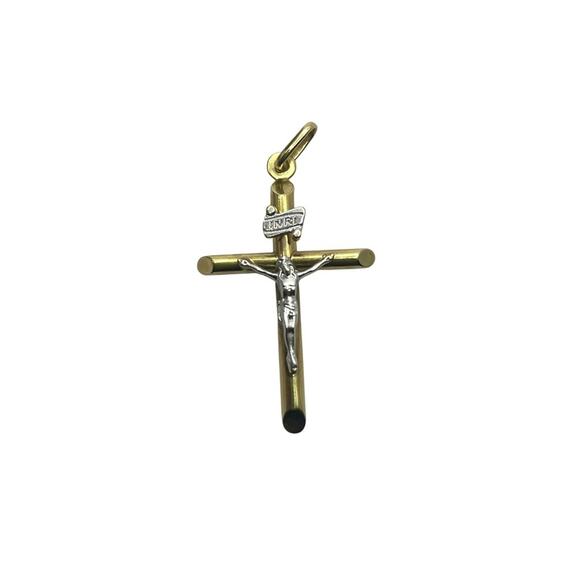 14K Two-tone Crucifix Cross Pendant