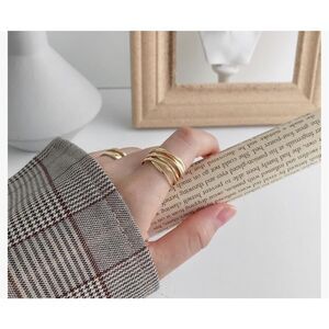 14K Vermeil sterling wrap around size 8 ring .This is solid sterling silver plated with 14K gold. These have open backs. Stamped. This is size 8 but because it’s so wide it would fit a size 7:75 real well. This ring is on the pointer finger. This is for one ring only. Gift boxed.