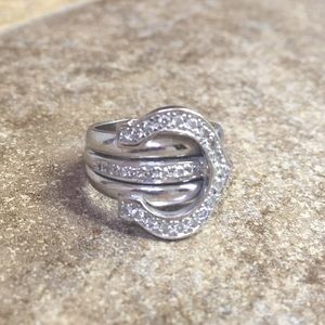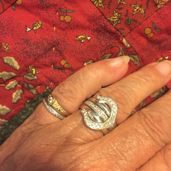 Stunning ring! Unique Vintage buckle style wide band ring has very high quality diamonds - VS2, H-I color, set in heavy solid 14K white gold setting. SIZE 6 and easily sized by your jeweler. Some minor scuffing and rough spots on sides of band which can easily be polished out. Betcha no one else has one like this because it was custom made! π***EXCLUDED FROM ANY Bundle Sale***π You can still use the Offer Button!π