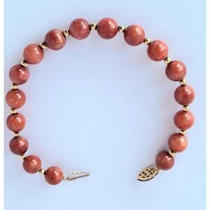 Vintage Red Jadeite 14k Yellow Gold Jade Bead Bracelet FRE SHIPPING US ONLY