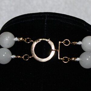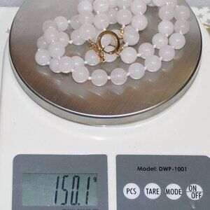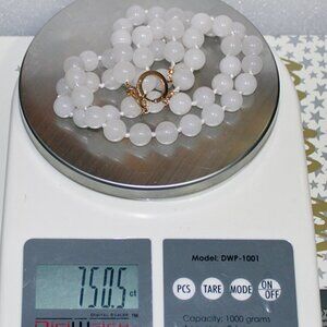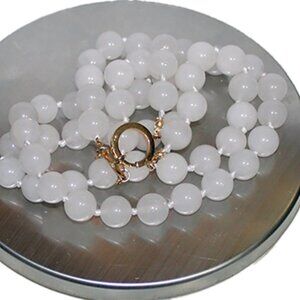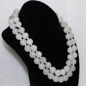 14K WHITE JADE NECKLACE - 12.5 MM STONES - 2 STRAND