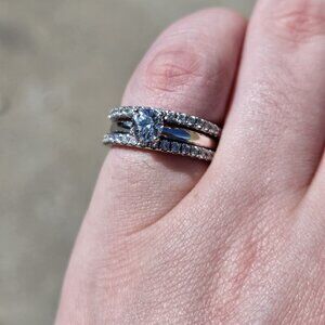 14K White Gold 1/2CT LEO Diamond Fused 3 Band Wedding Ring Set 1.00TCW Size 5
