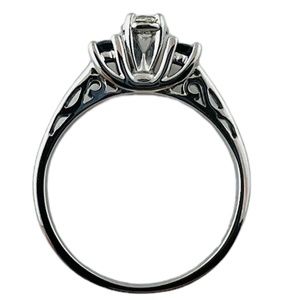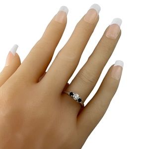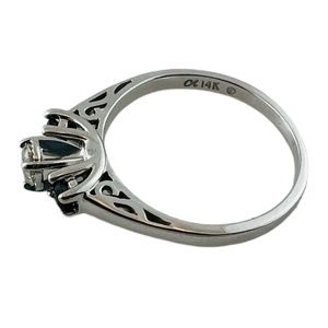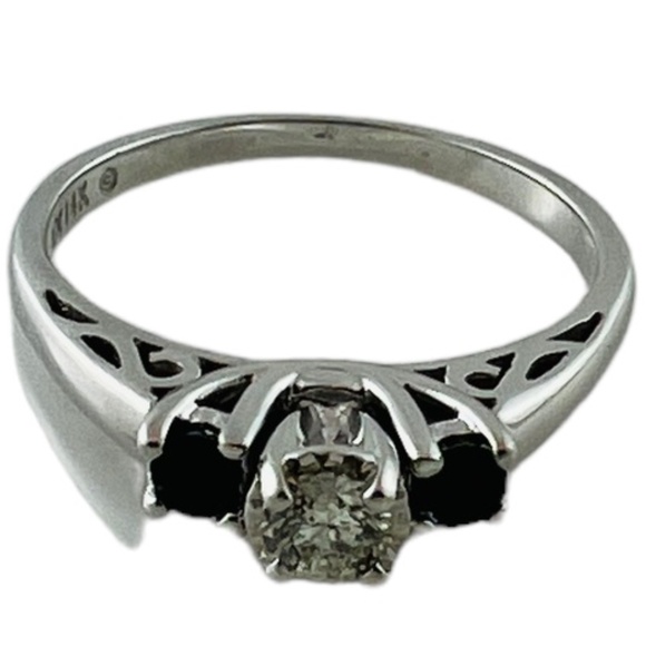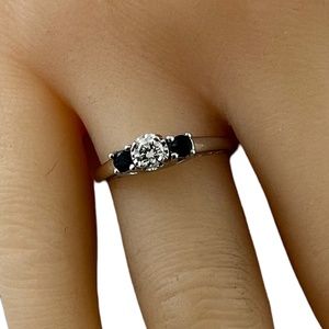 14K White Gold 3 Stone Natural Diamond and Lab Created Sapphires Ring