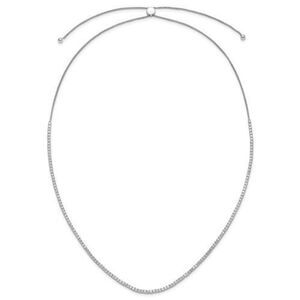 Crafted in solid 14K white gold with a rhodium-plated finish, each 2.3mm round diamond sparkles with exceptional brilliance. With its modern bolo closure and lightweight yet substantial design (15.25 grams), this necklace is comfortable for everyday wear yet radiant enough for evening occasions.