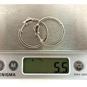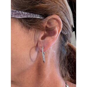 14K White Gold Diamond Inside-Out Hoop Earrings 1.6mm 5.5g Sparkling Hoops
