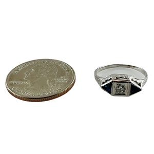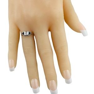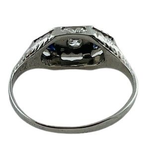 14K White Gold Diamond Lab Created Sapphire Filigree Ring 4.75 #15675