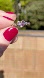 Two pear-shaped stones meet to form a heart, flanked by a tiny diamond accent and openwork curls along the shoulders. Fresh polish on bright 14k white gold. I consider this “mall jewelry done right.”
