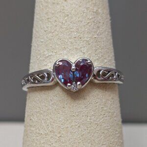 14K White Gold Heart Ring with Blue-Violet Gemstones — Size 7