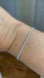 14K white gold stamped. Approximately 1.7 carats and 1.7mm width. Round cut lab grown diamonds. Crocodile claw clasp which I love because it’s secure and lays flat so it’s not bulky/snagging on stuff.
