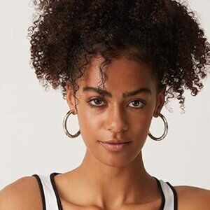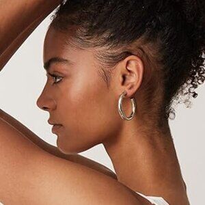 14K White Gold Lightweight Chunky Open Hoop 40mm Earrings Statement Jewelry