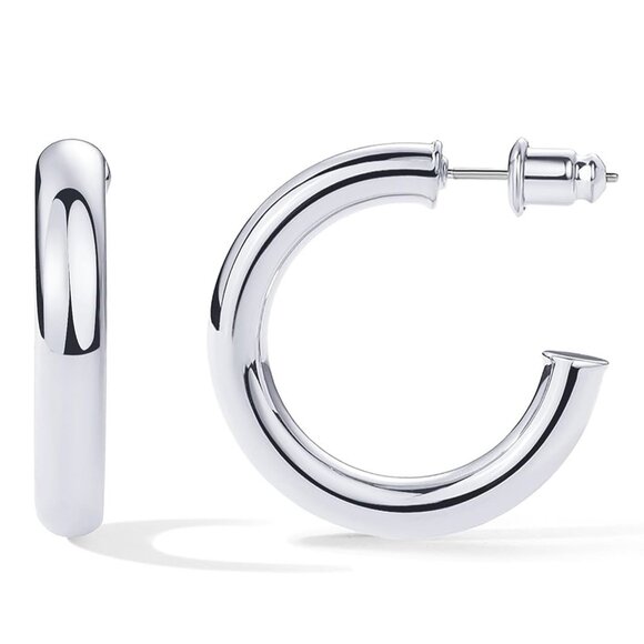 }PAVOI 4.5mm Thick 30mm (1.2 Inches) Diameter White Gold Colored Small Hoop Earrings.