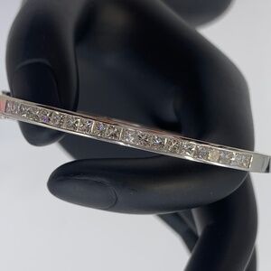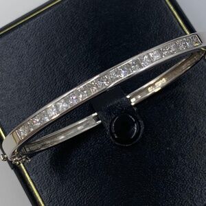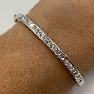 14K White Gold Princess Cut Diamond Bangle Bracelet