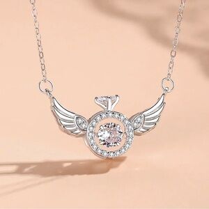 14K White Gold/ Rhodium Plated Diamond In Motion Diamond Ring w/ Wings Necklace