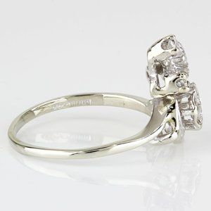 This stunning vintage ring is made of 14 Karat White Gold featuring 5 diamonds placed throughout a vintage design in the center of the ring. This rings original size is a size 9, although it can be re-sized if needed by a qualified jeweler. It weighs a total of 2.22 pennyweights which is equivalent to 3.45 grams. Please keep in mind that this ring is stamped with “GOTHIC 14K” on the inner band of the ring. The ring is in overall excellent condition with minor scratches which are not easily visible. The ring is perfect for a cocktail ring or even to wear during a bridal photo shoot.