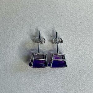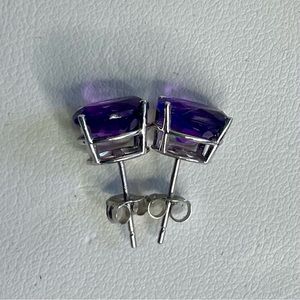 14K White Gold and Amethyst Stud Earrings 2g